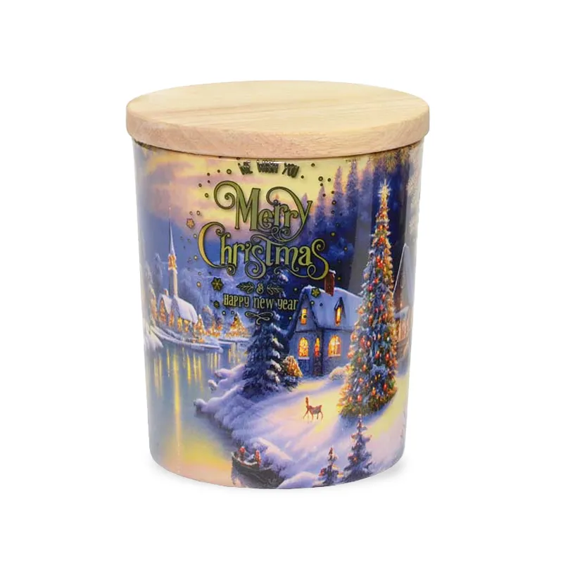 Božična sveča v steklenem kozarcu s pokrovom iz bambusa je popolna kombinacija elegance, topline in prazničnega vzdušja. Na voljo je z različnimi božičnimi vonji in motivnimi potiski, ki pričarajo čarobnost praznikov v vsakem domu. Bambusov pokrov ohranja svežino vonja in omogoča ponovno uporabo kozarca. Odlična je kot dekoracija ali kot lepo in dišeče darilo v prazničnem času.