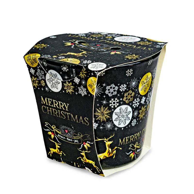 Božična sveča v steklenem kozarcu s pokrovom iz bambusa je popolna kombinacija elegance, topline in prazničnega vzdušja. Na voljo je z različnimi božičnimi vonji in motivnimi potiski, ki pričarajo čarobnost praznikov v vsakem domu. Bambusov pokrov ohranja svežino vonja in omogoča ponovno uporabo kozarca. Odlična je kot dekoracija ali kot lepo in dišeče darilo v prazničnem času.