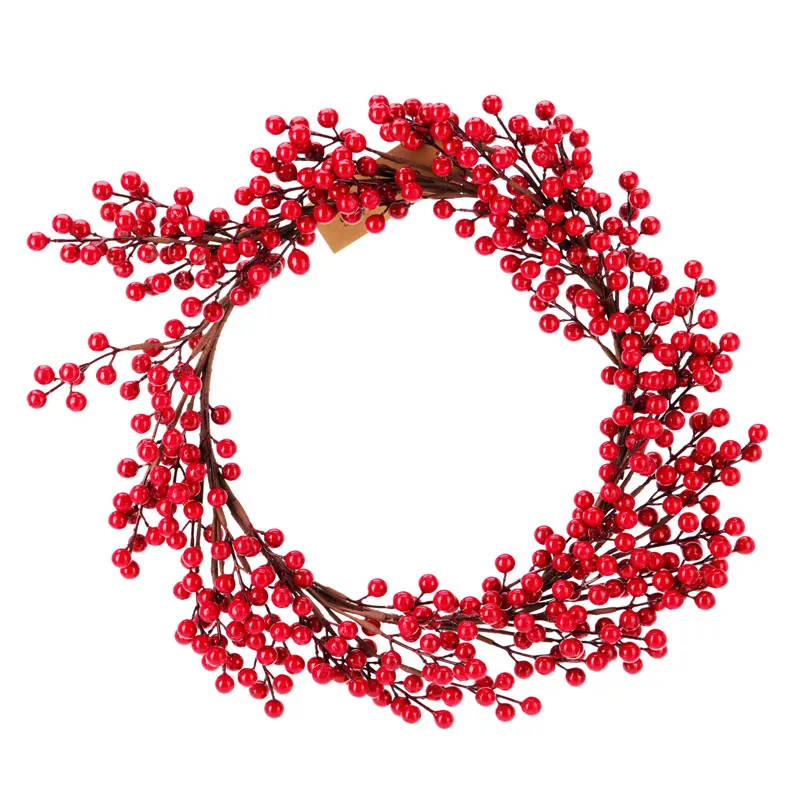 Venček božični za na vrata, rdeče jagodičevje, 30cm