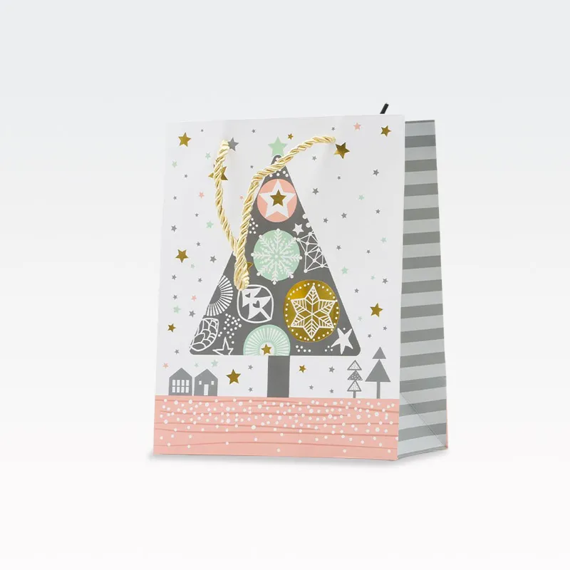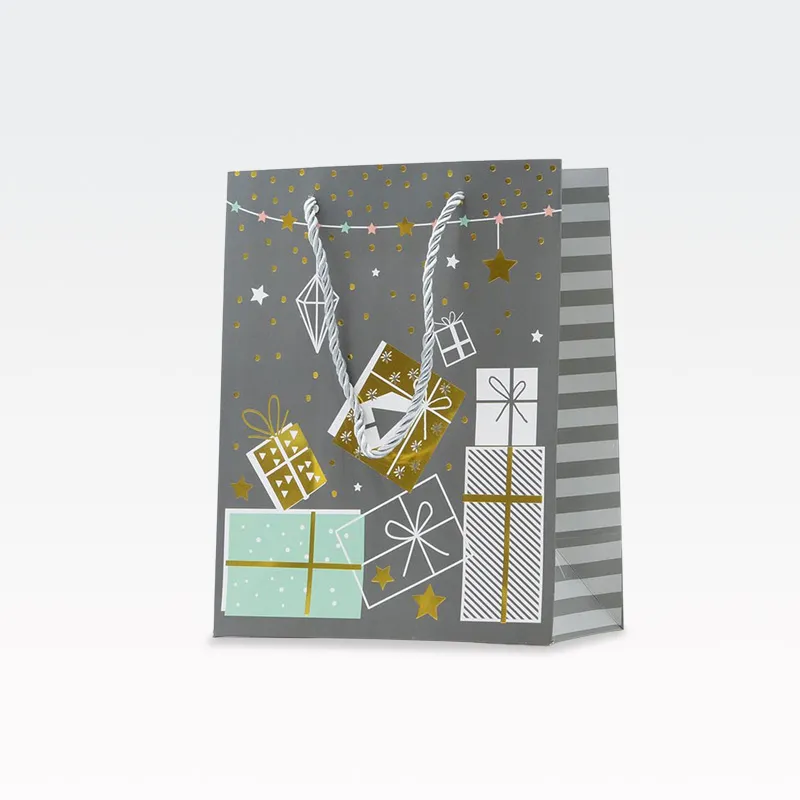 Darilna vrečka dimenzij 32x26x12 cm je idealna za zavijanje prazničnih daril. Narejena je iz kakovostnega papirja in na voljo v beli ali zeleni barvi z božičnimi motivi. Zaradi priročne velikosti je primerna za srednje velika darila, kot so igrače, knjige