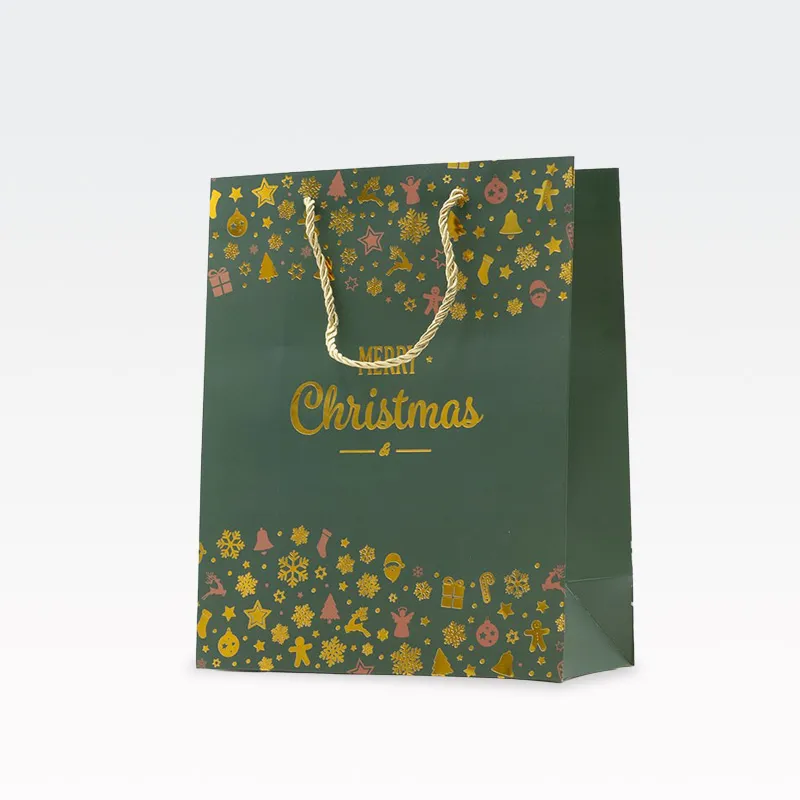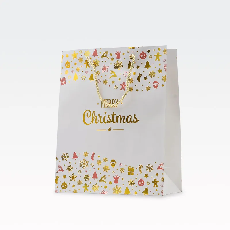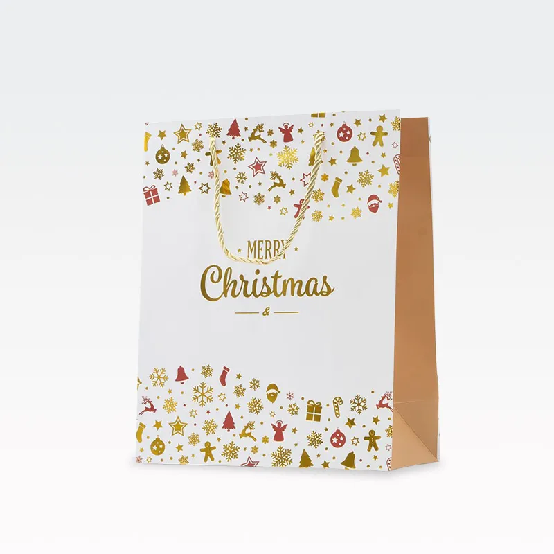 Darilna vrečka dimenzij 32x26x12 cm z napisom "Merry Christmas" je elegantna in praktična izbira za zavijanje večjih božičnih daril. Izdelana je iz kakovostnega papirja in je na voljo v različnih enobarvnih različicah, ki zagotavljajo prefinjen in praznič