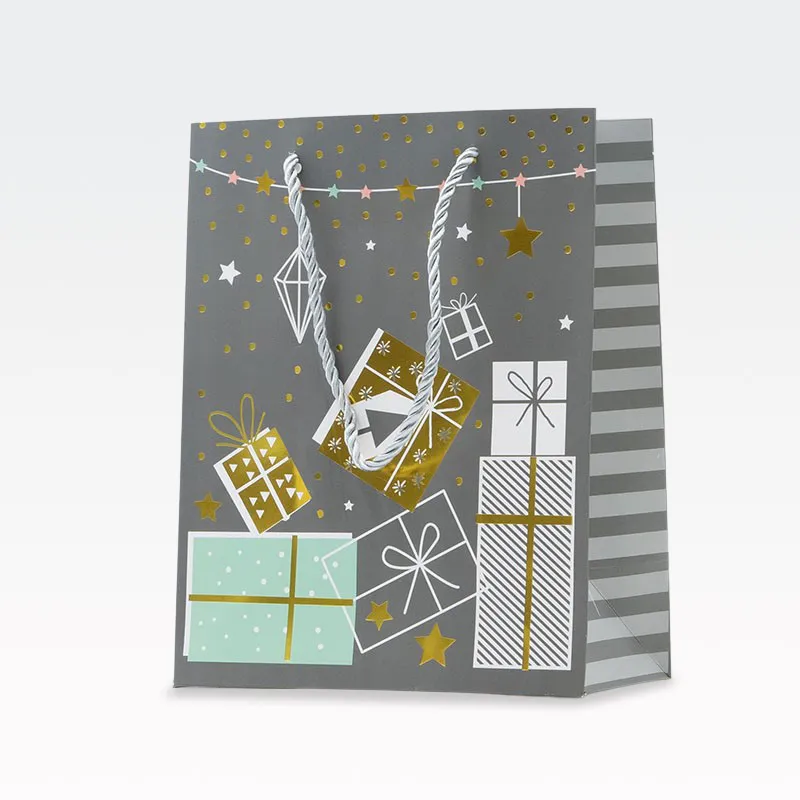 Darilna vrečka dimenzij 40x30x12 cm je idealna za zavijanje prazničnih daril. Narejena je iz kakovostnega papirja in na voljo v beli ali zeleni barvi z božičnimi motivi. Zaradi priročne velikosti je primerna za srednje velika darila, kot so igrače, knjige