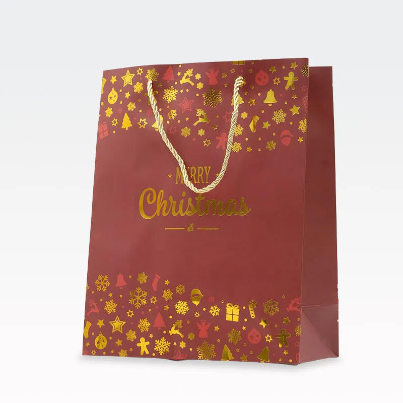 Vrečka darilna, 40x30x12 cm, Merry Christmas, enobarvna, sort