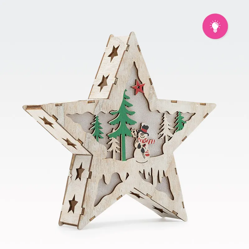 Zvezda, božična dekoracija, z LED lučko, bela/pisana, MDF, 21x4cm