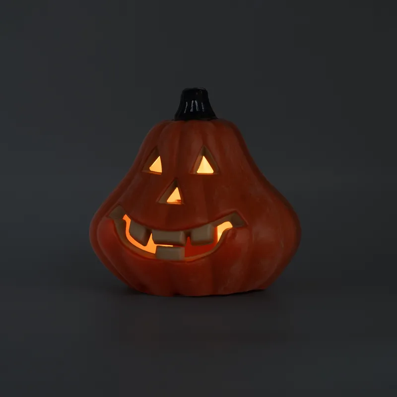 Buča ima vgrajeno LED lučko, ki prinaša dodaten čar s svetlobnimi efekti, ki lahko osvetlijo prostor s toplo ali barvno svetlobo. Ta funkcija omogoča buči, da postane središče pozornosti na praznični mizi ali kot del zunanje dekoracije. Njena kompaktna velikost omogoča enostavno namestitev na različne površine in v različne okoljske postavitve, idealno za dodajanje pridihu prazničnosti v vaš dom ali na zabavo za Noč čarovnic.