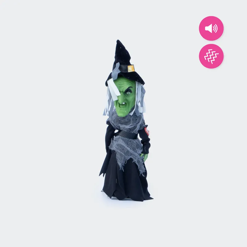 Ta plesoča čarovnica je opremljena z mehanizmom, ki ji omogoča, da se premika in pleše, kar dodaja zabaven in dinamičen element vaši praznični dekoraciji. Prav tako je opremljena z zvočno funkcijo, ki ob aktivaciji oddaja strašljive ali zabavne zvoke, kar povečuje atmosfero na vaši zabavi ali dekorativnem prostoru. Odlična je za postavitev na vhodu, v dnevni sobi ali kjer koli drugje, kjer želite dodati malo magije in zabave svojemu praznovanju Noči čarovnic.