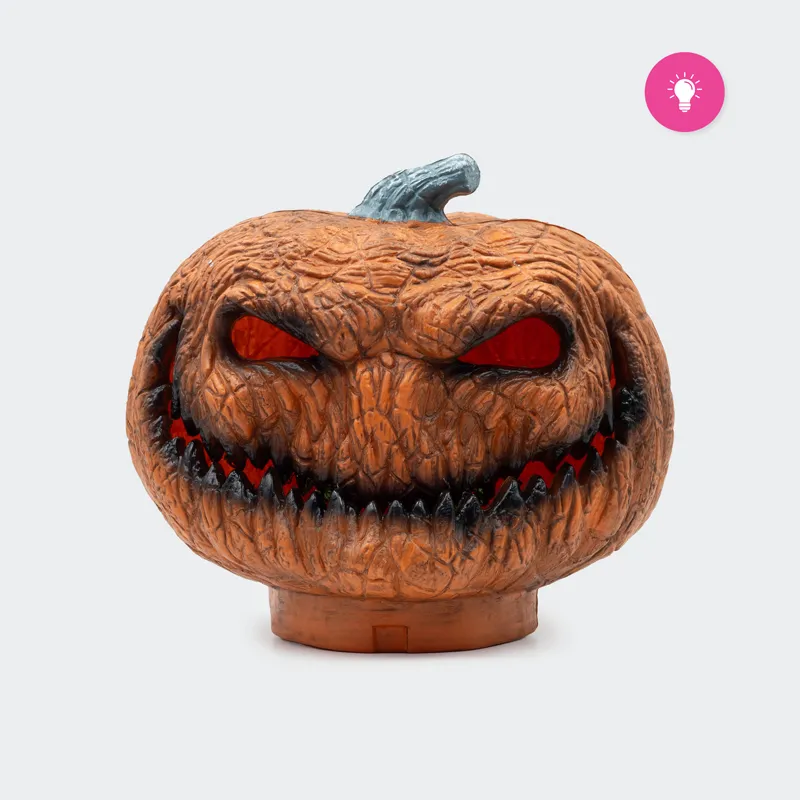 Buča ima videz gnile buče, kar še dodatno poudarja njen strašljiv učinek, in je opremljena z LED lučko, ki osvetljuje notranjost, kar ustvarja srhljivo vzdušje, še posebej v temi. Ta dekoracija je popolna za postavitev na verando, v notranje prostore ali kot del večje strašljive postavitve za Noč čarovnic. LED lučka bo zagotovo pritegnila pozornost in dodala strašljiv, a hkrati prazničen pridih vašemu prostoru.