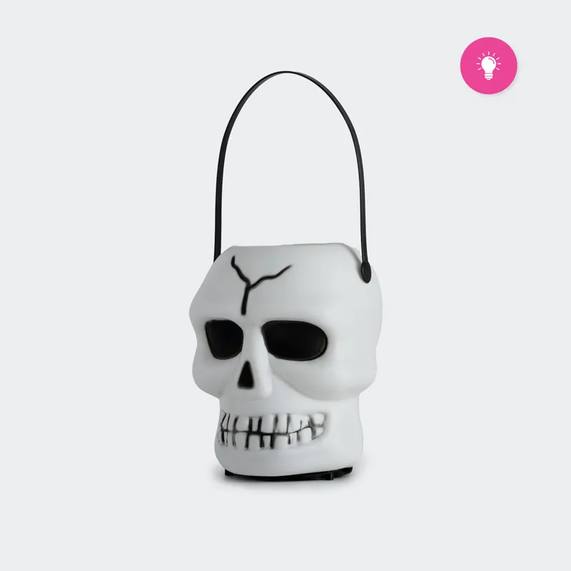 Smrtna glava ima vgrajeno LED lučko, ki ustvari mističen svetlobni učinek, kar poveča njeno srhljivost in doda dramatičen pridih vaši dekoraciji. LED luč lahko oddaja različne barvne odtenke, ki poudarjajo podrobnosti smrtne glave, kar jo naredi še bolj zastrašujočo v temi. Ta lučka je popolna za ustvarjanje strašljivega vzdušja na zabavi za noč čarovnic ali kot del vašega dekorativnega prostora.