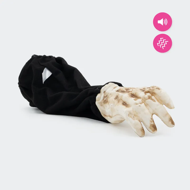 Roka plesoča je namenjena zabavi ob praznovanju Noči čarovnic. Izdelana je iz kombinacije umetne mase in blaga, kar ji omogoča, da je trpežna in hkrati privlačna na pogled. Velikost te roke je 34 cm v višino in 9.5 cm v širino. Roka je zasnovana tako, da se lahko premika v ritmu glasbe, kar doda zabavni element vaši dekoraciji. Poleg tega ima vgrajen zvočni mehanizem, ki se aktivira ob gibanju, kar še dodatno poudari strašljiv učinek, značilen za Noč čarovnic.