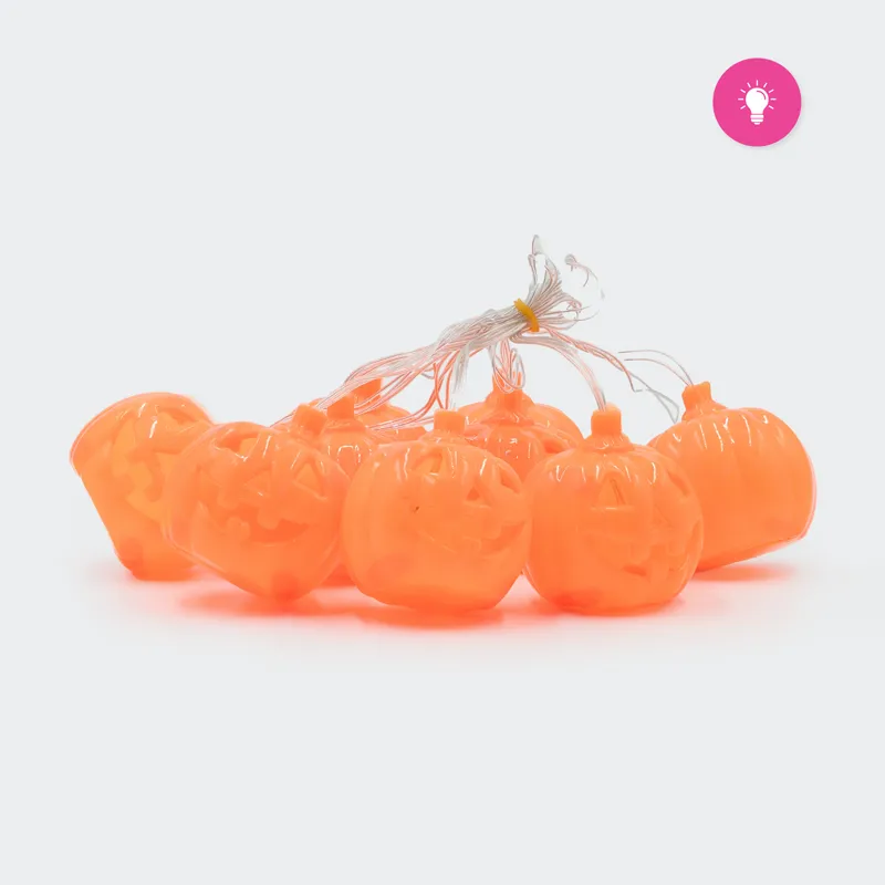 Vsaka buča na girlandi je opremljena z LED lučko, ki ustvarja prijetno in srhljivo svetlobo, idealno za tematske zabave ali dekoracijo ob nočeh. Girlanda je primerna za obešanje nad vhodom, ob oknih, na verandi ali celo v notranjih prostorih, kjer bo dodala pridih prazničnosti in osvetlila prostor z nežno, oranžno svetlobo. To je popoln dekorativni element za ustvarjanje vzdušja noči čarovnic.
