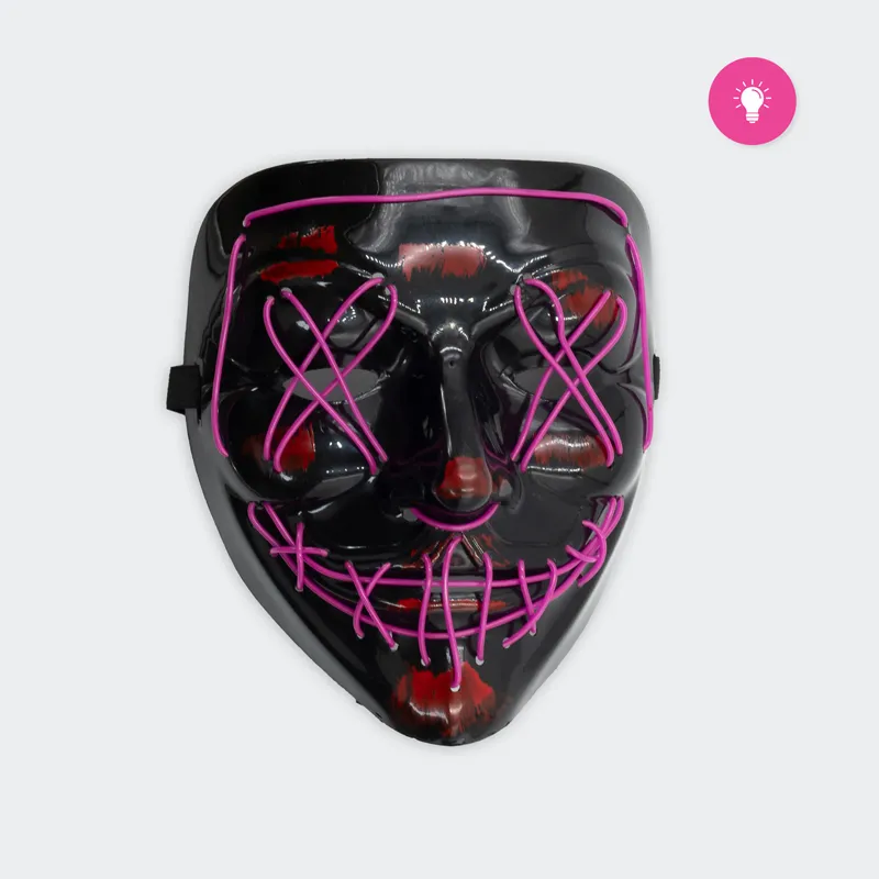 Maska vključuje LED lučko, ki ponuja tri različne funkcije osvetlitve, kar omogoča uporabniku, da prilagodi svetlobne učinke glede na želene nastavitve ali okolje. Te funkcije lahko vključujejo stalno svetenje, utripanje ali počasno preklapljanje svetlobe, kar dodaja dramatičen in privlačen vizualni učinek. Črna barva maske prispeva k njenemu skrivnostnemu videzu, kar je idealno za ustvarjanje zlovešče ali skrivnostne podobe na noč čarovnic zabavah ali dogodkih.