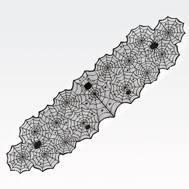 Prt tekač, Halloween, črn, pajkova mreža, poliester, 45x185cm