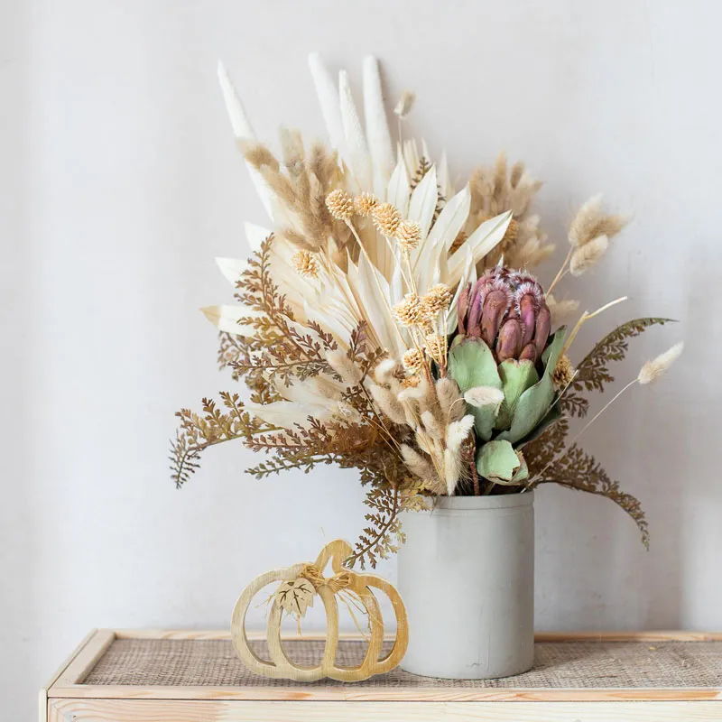 Ta lesena dekoracija buča je odličen način, da v svoj dom vnesete naravno toplino in rustikalno eleganco. Ne glede na to, kam jo postavite, bo ta prijeten kos zagotovo ustvaril pravo vzdušje jeseni.