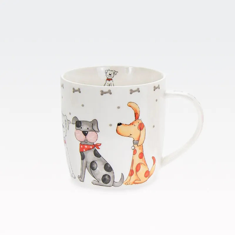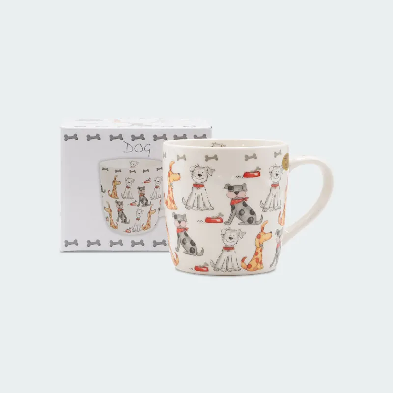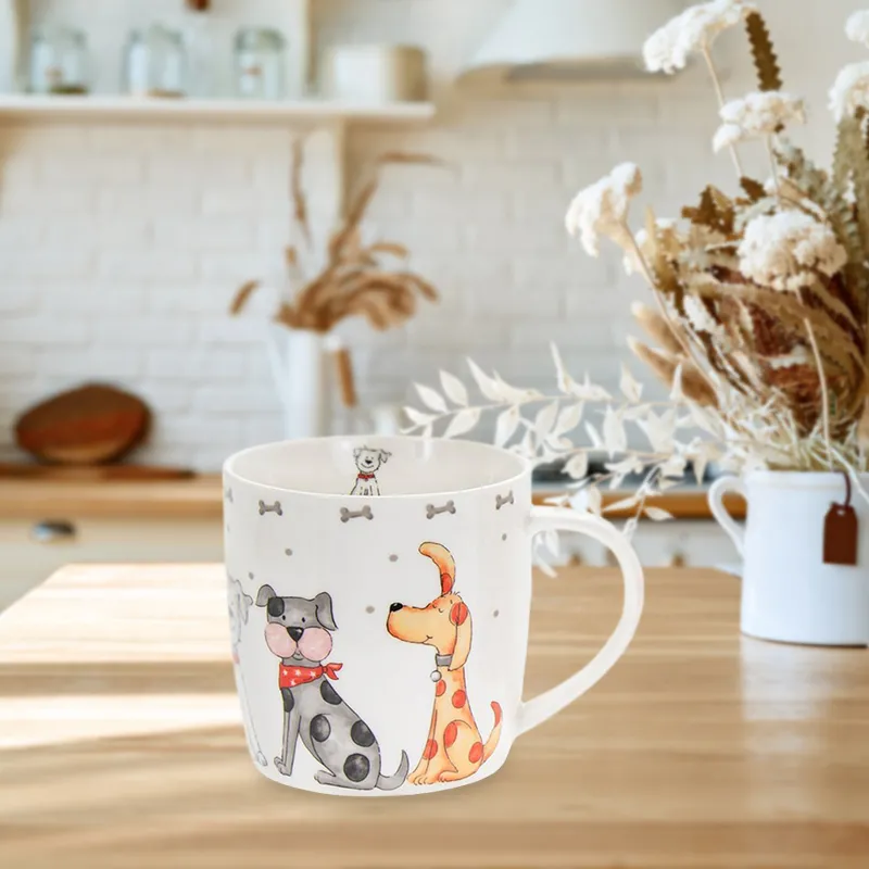 Lonček, motiv psov, kitajski porcelan, v darilni embalaži, 9cm, sort.