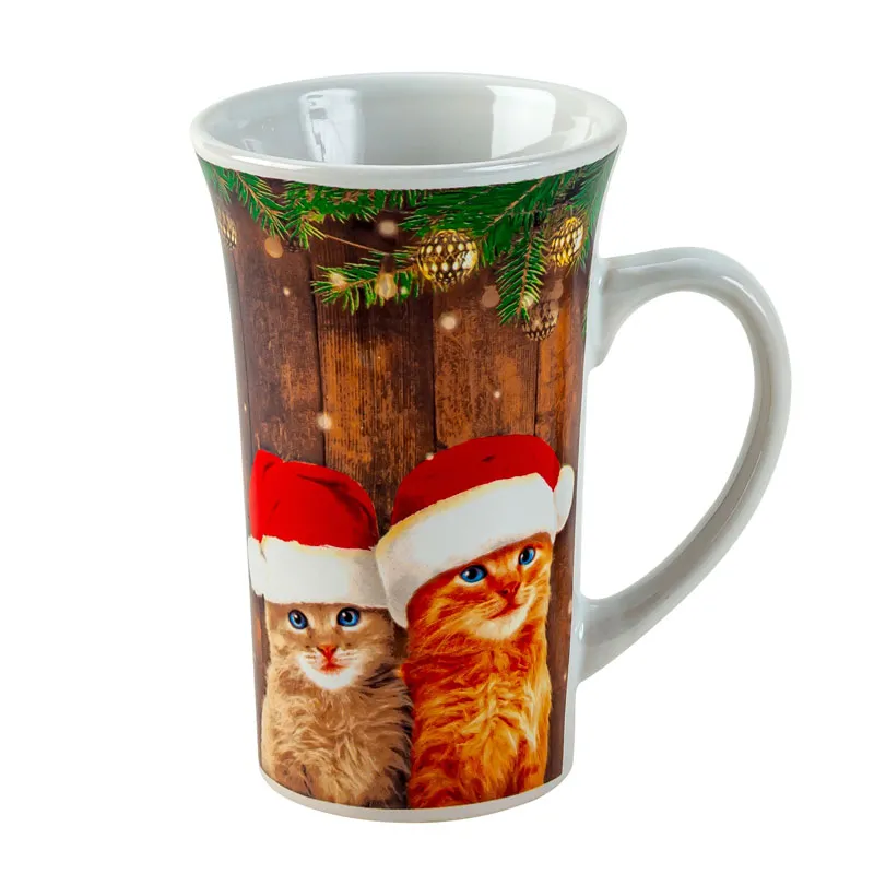 Prisrčen božični lonček z motivom muck z božično kapo bo v vaš dom prinesel praznično veselje in toplino. Izdelan je iz kakovostne keramike, primeren za kavo, čaj ali vročo čokolado. S prikupnim motivom mačk v prazničnem vzdušju je popolna izbira za ljubitelje živali in idealno darilo v božičnem času. Vsi mačjeljubci bodo izredno veseli takega darila.