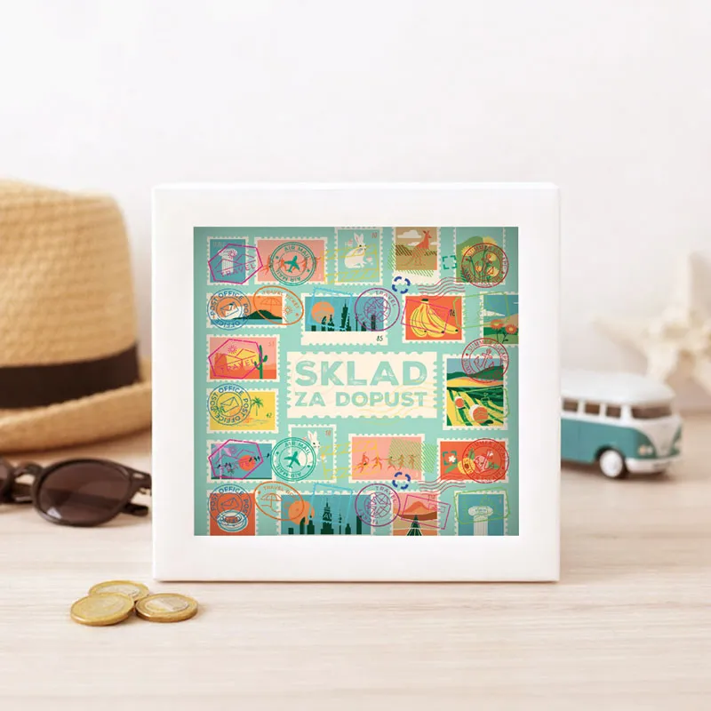 Lesen hranilnik z napisom "Sklad za dopust" je idealno darilo za tiste, ki po dopusti razmišljajo že o novem dopustu.