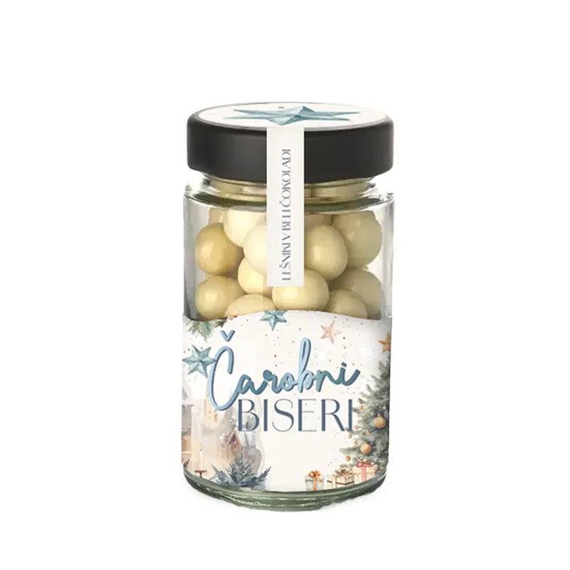 Dražeji v steklenički, ČAROBNI BISERI, lešniki v medeni čokoladi, 125 g