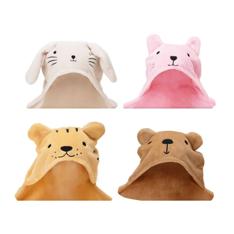 Odeja otroška s kapuco, živalski motiv, flis, 150x130cm, sort.