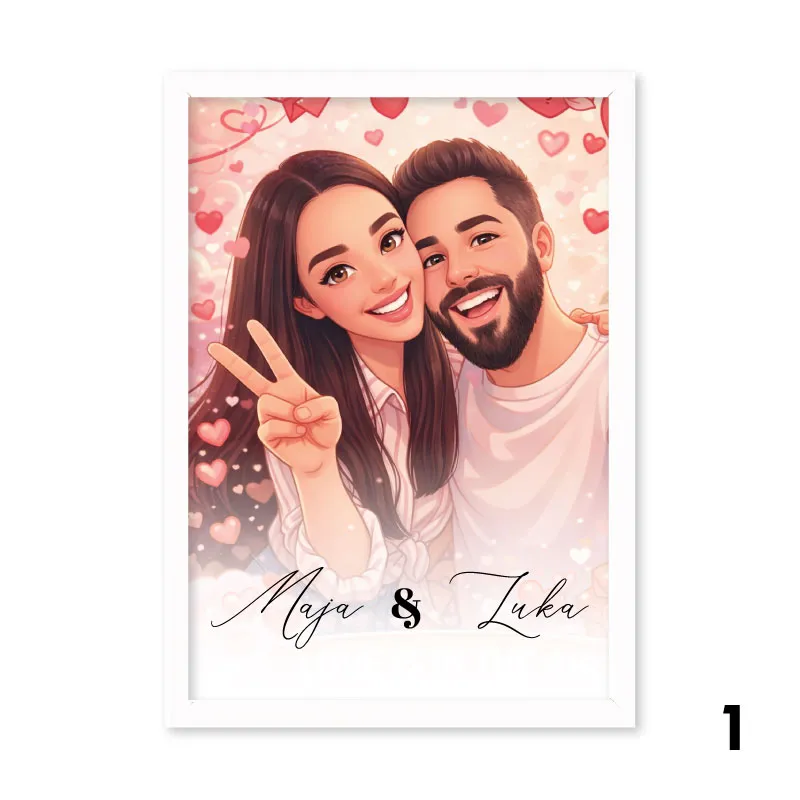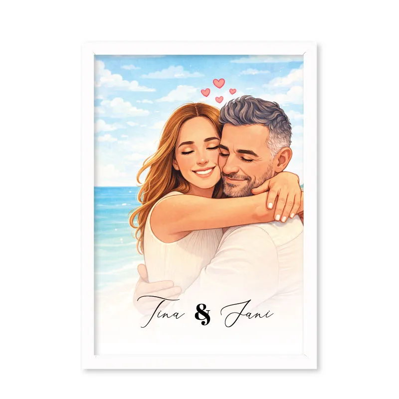Personalizirana ilustracija »Uokvirjena ljubezen« je čudovit in oseben kos umetnosti, ki v minimalističnem slogu ujame vajino zgodbo. Ilustracija je ustvarjena po meri – na podlagi vaše fotografije ter po želji dopolnjena z imeni, datumom ali kratkim sporočilom – ter elegantno umeščena v okvir, ki se lepo poda vsakemu prostoru.