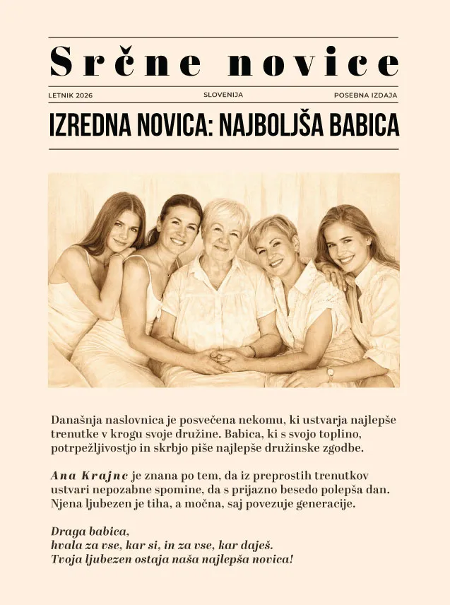Personalizirana ilustracija v obliki časopisa Najboljša babica
