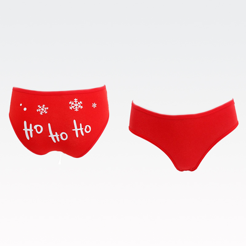 Set ženskih spodnjic, 2/1, rdeče, božični napis "HO, HO, HO/Christmas", 95% bombaž, 5% elastan, različne velikosti