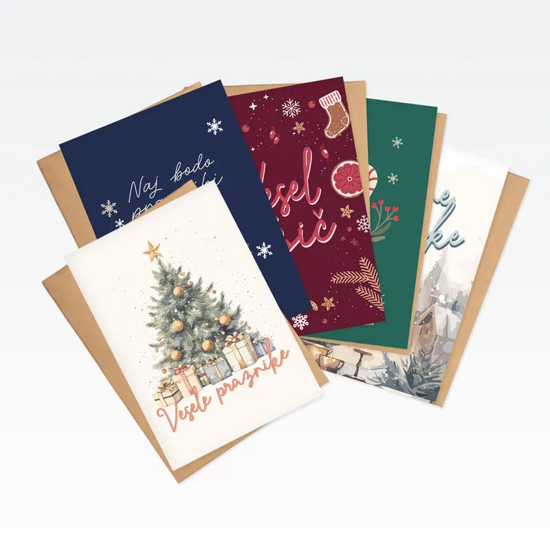 Izrazite svoje praznične želje na klasičen in osebni način s paketom božično-novoletnih voščilnic. Paket vsebuje 5 voščilnic s čudovitimi prazničnimi motivi, primernimi za različne okuse in priložnosti. Voščilnice so izdelane iz kakovostnega papirja in vk
