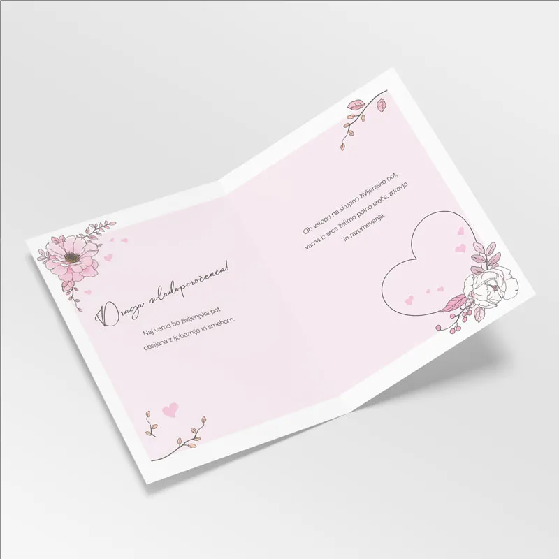 Voščilnica velika, poroka, Iskrene čestitke, srce v cvetju