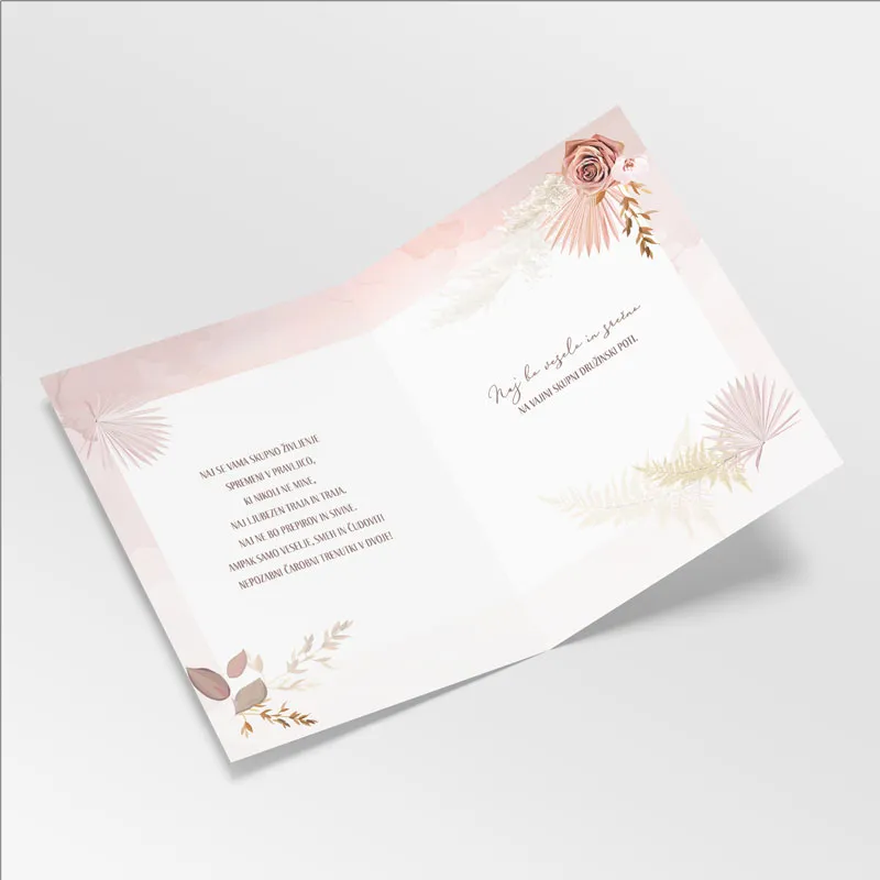 Voščilnica velika, poroka, Nevesta in ženin, iskrene čestitke, rože