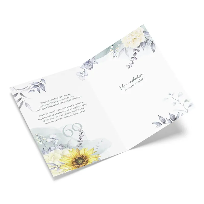 Voščilnica velika, rojstni dan, ženska, 60, Iskrene čestitke ob okroglem jubileju, sončnice